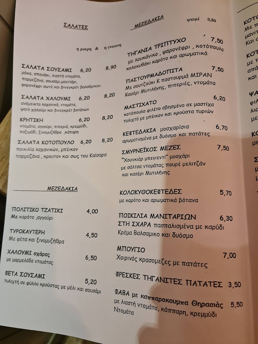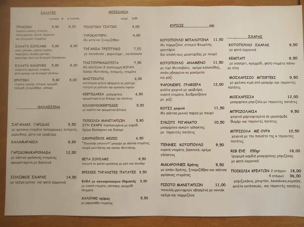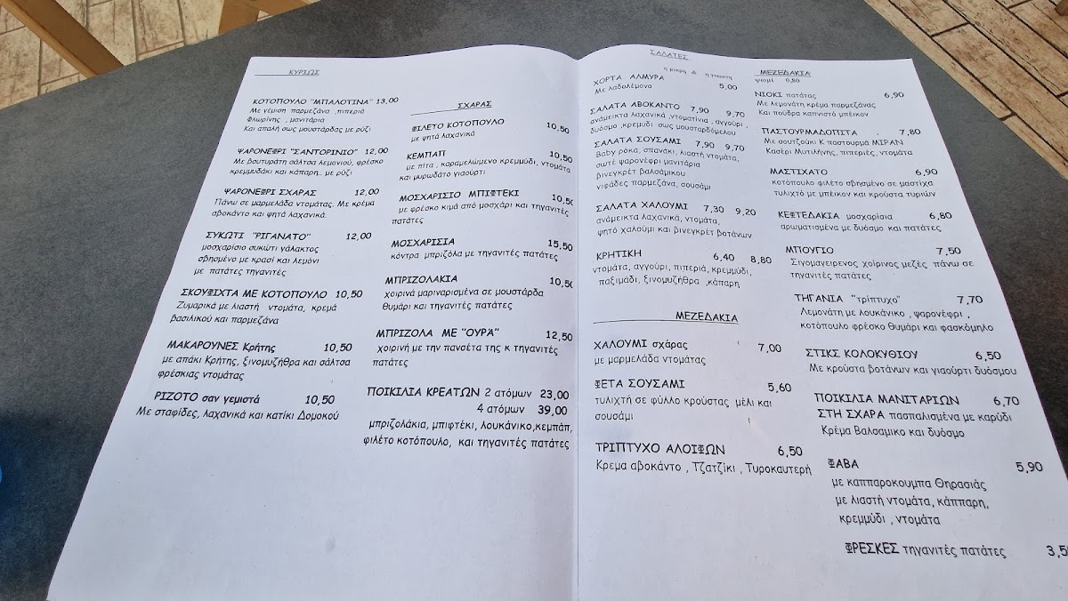 The menu showcases a variety of traditional and contemporary plates that balance fresh, local ingredients with familiar tastes. You’ll find items like Σαλάτα Σουσάμι (Sesame Salad) and Κολοκυθοκεφτέδεσ (Zucchini Fritters) that work perfectly as light starters or accompaniments, while hearty options such as Μπιφτέκια (Greek-style burgers) and Κοτόπουλο Μπαλοτίνα (Stuffed Chicken) offer satisfying main courses. For those seeking vegetarian or fasting-friendly choices, the menu includes thoughtfully selected νηστίσιμα options.